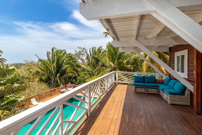 El Apartamentito includes pool access, wifi, private deck with hammocks, living area, and tv, access to barbeque deck and pool area kitchen.