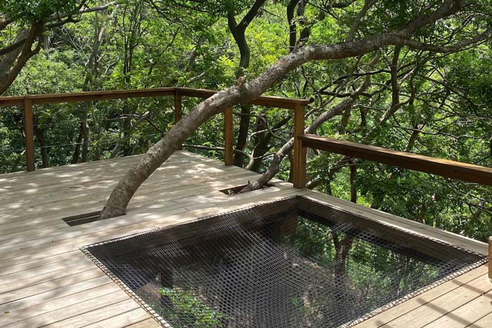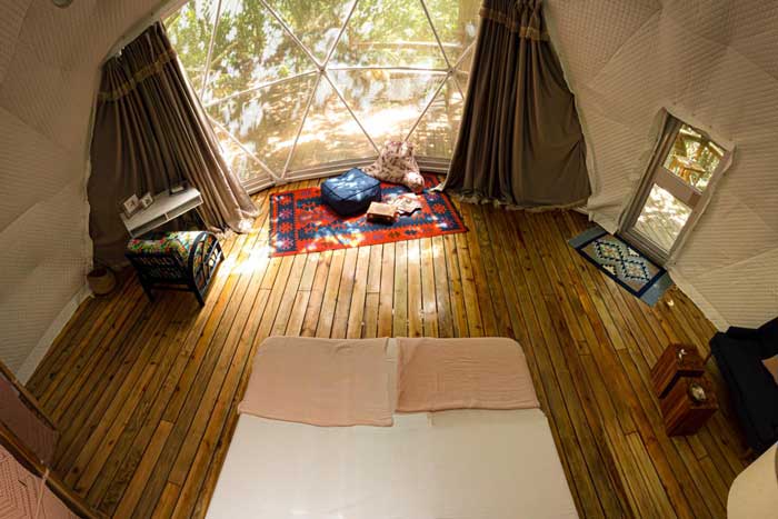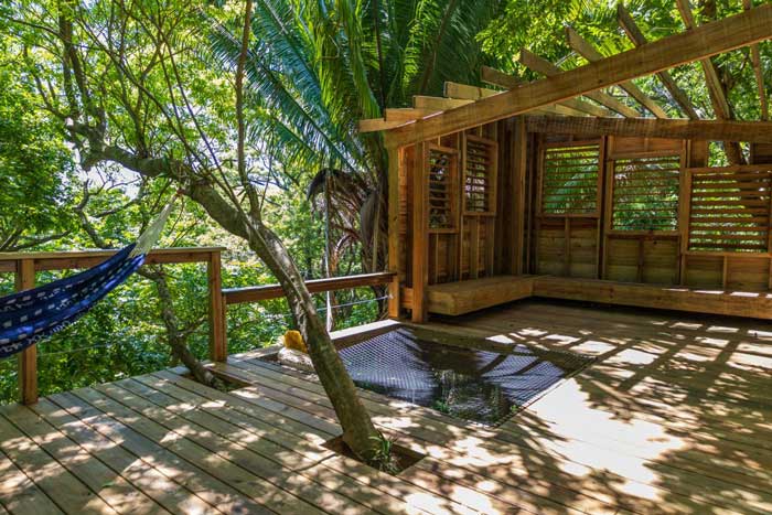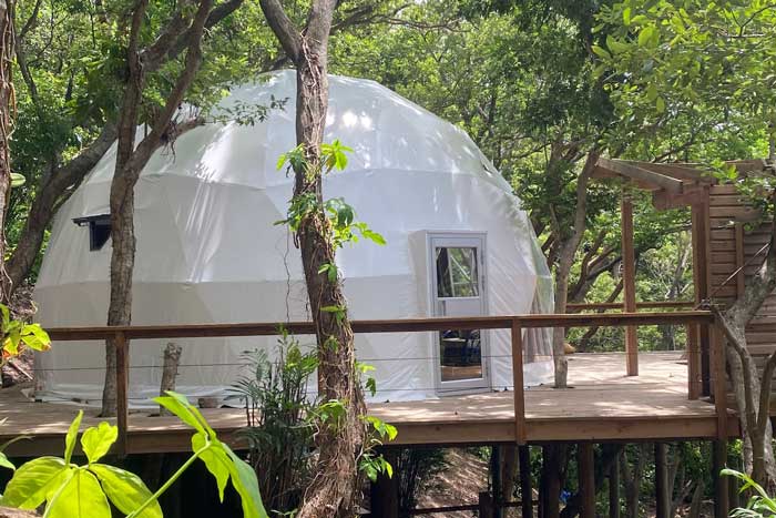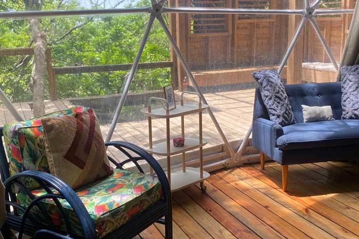The Jungle Dome includes pool access, wifi, private deck with hammocks, living area, Wifi, access to barbeque deck and pool area kitchen.