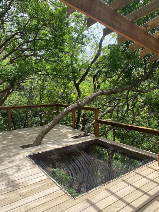 Our signature pool sits far above the sea in the morning sun in the jungle.