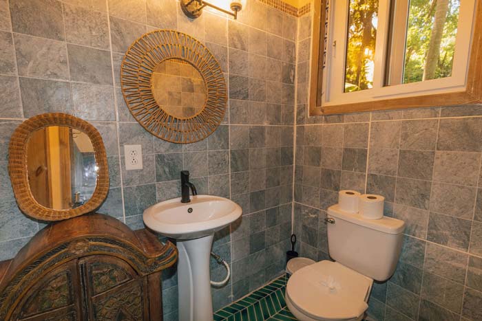In-house refrigerator and microwave, tea kettle, and coffee pot are amenities of Roatan’s only geodesic dome. The dome can accommodate up to four guests, but is ideal for the couple or single looking to unplug and get away. *Yes, it has wifi, but the focal point is nature!